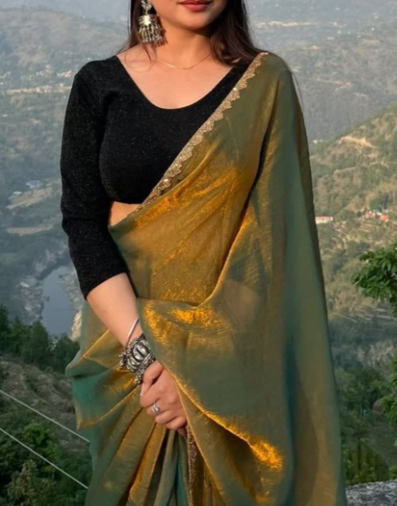 The blouse worn by the model might be for modelling purpose only. Check the image of the blouse piece to understand how the actual blouse piece looks like.