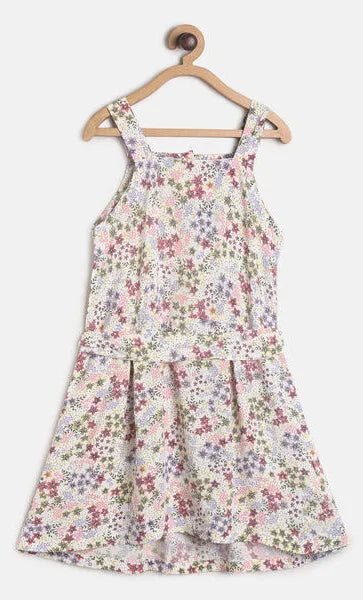 Treat your little girl with this beautiful one-piece dress. A sleeveless strappy dress with gorgeous floral print all over. The asymmetric hem and attached fabric belt accentuates its look. Style it with a nice hairband and sandals to complete the look.